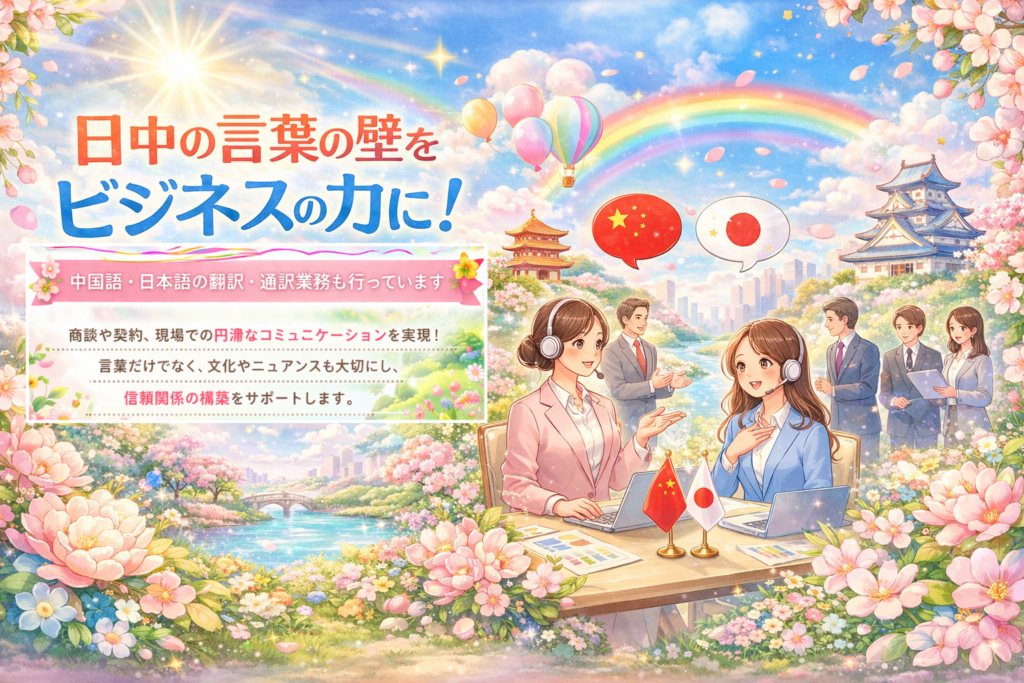 弊社は中国語・日本語の翻訳・通訳業務も行っており、商談や契約、現場での円滑なコミュニケーションを実現いたします。言葉だけでなく文化やニュアンスも大切にし、信頼関係の構築をサポートいたします。